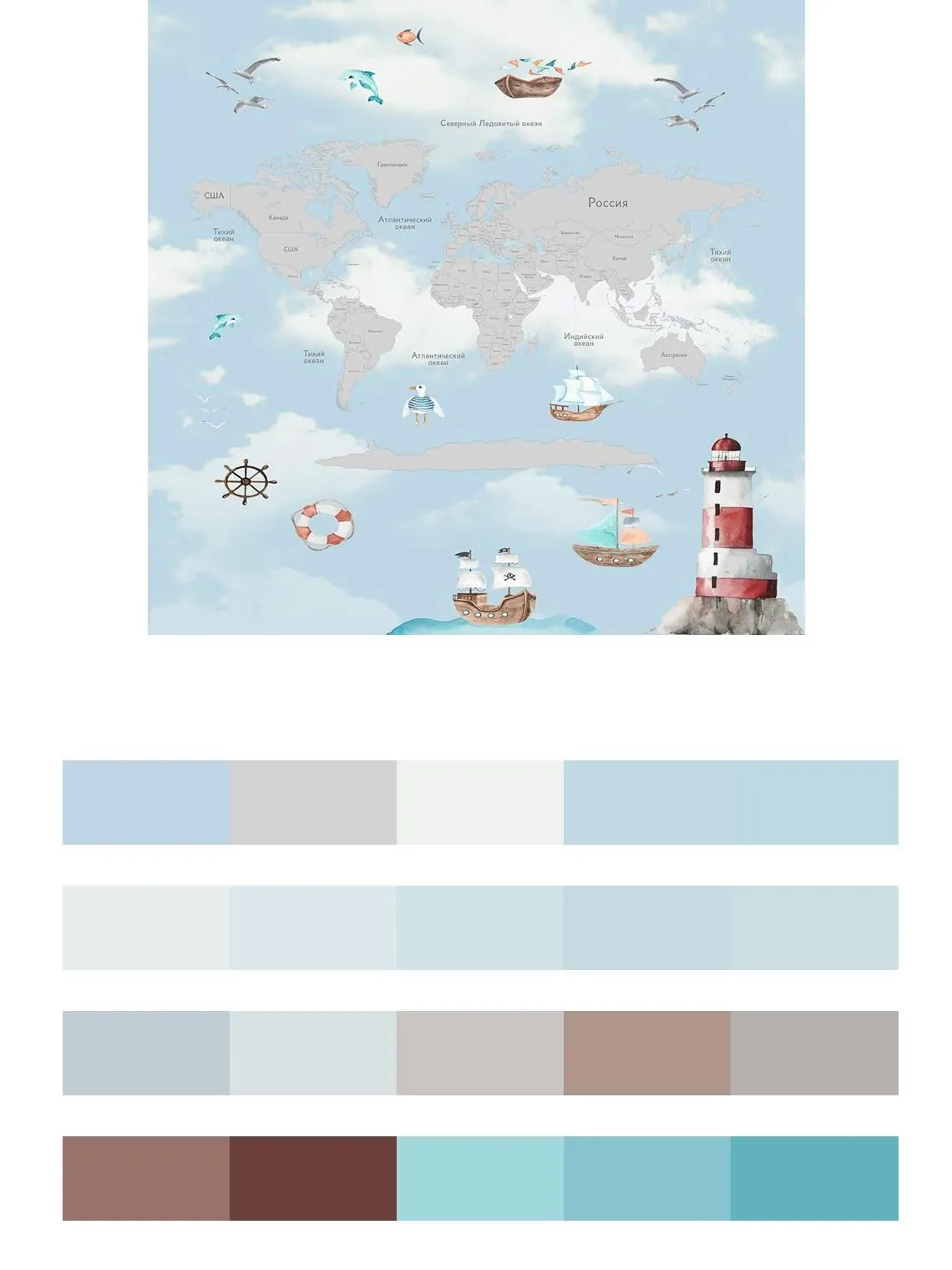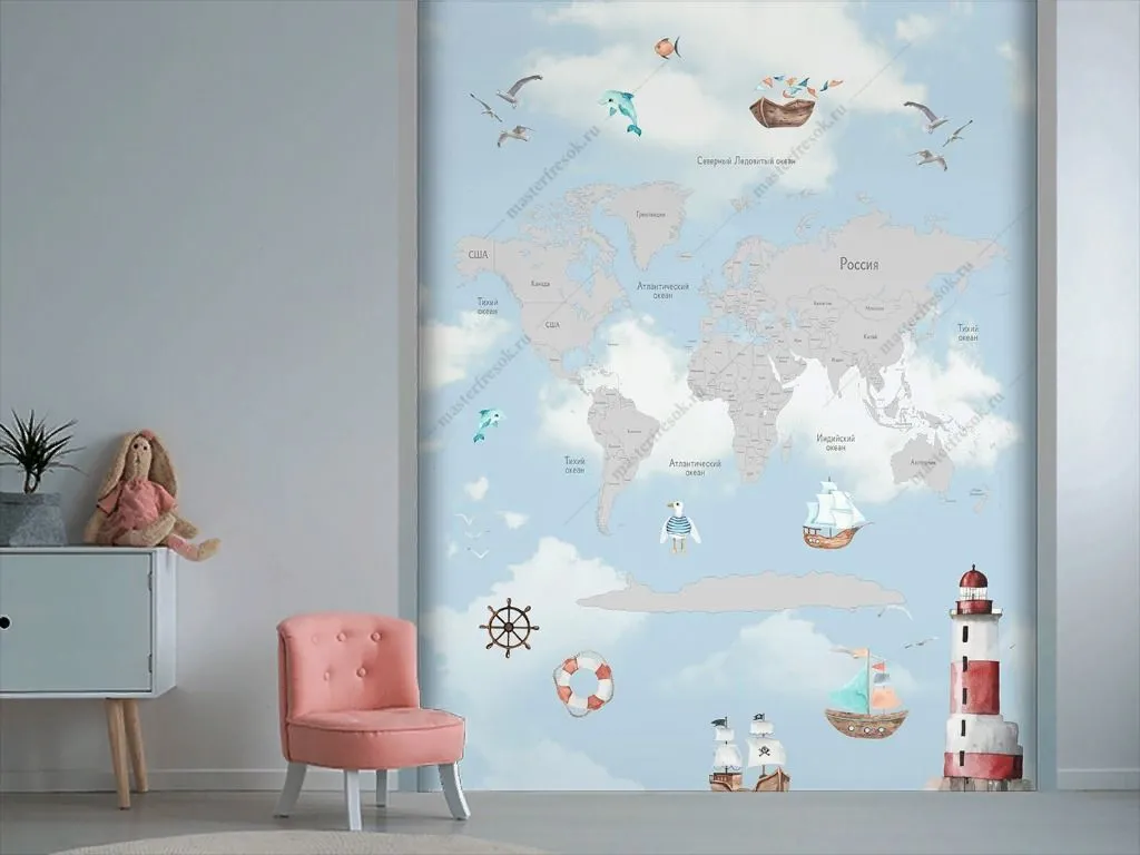 Бесшовные обои на стену: Карта детская и маяк. Артикул: 14-684