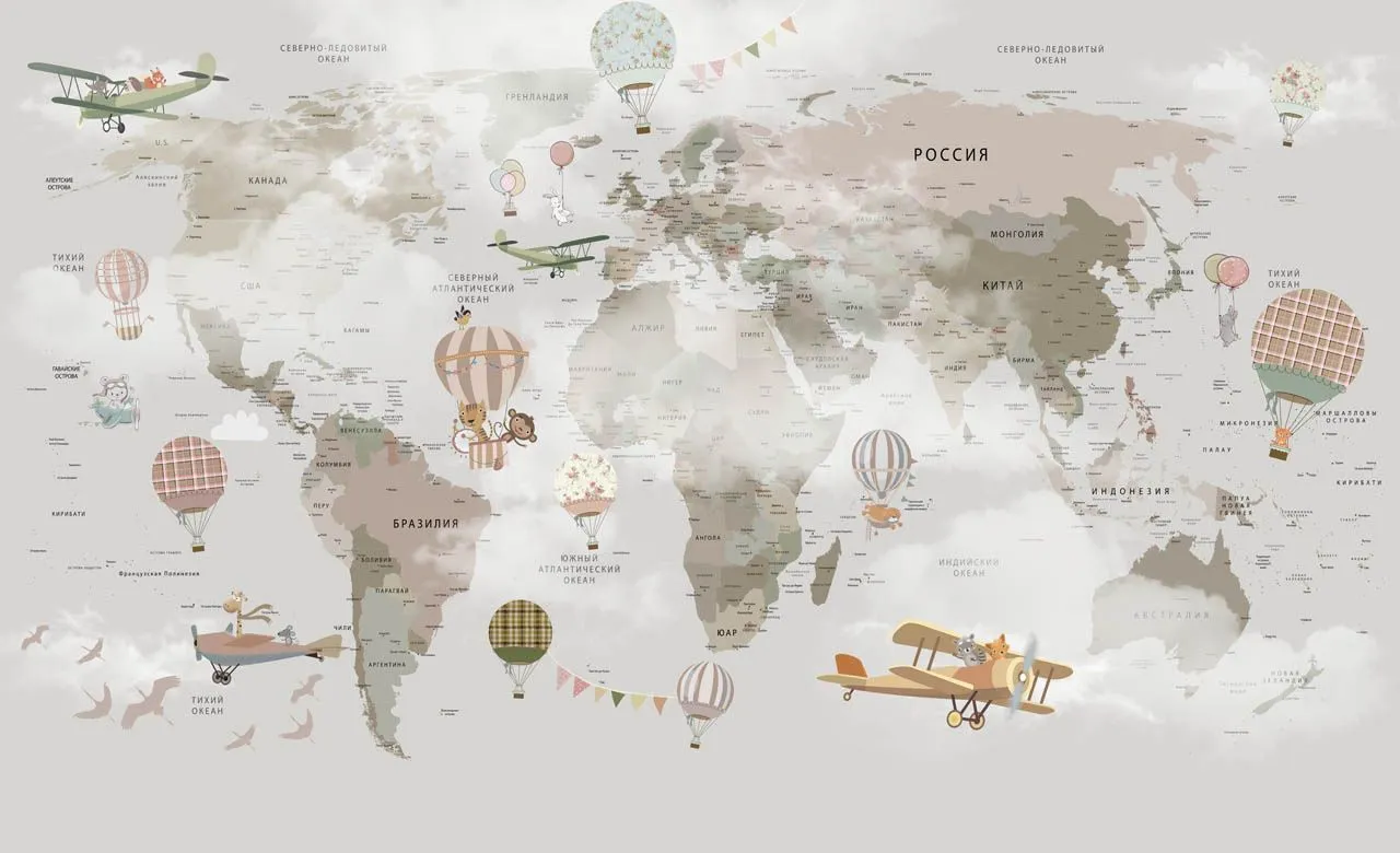 Бесшовные обои на стену: Карта мира с облаками. Артикул: 19-0033