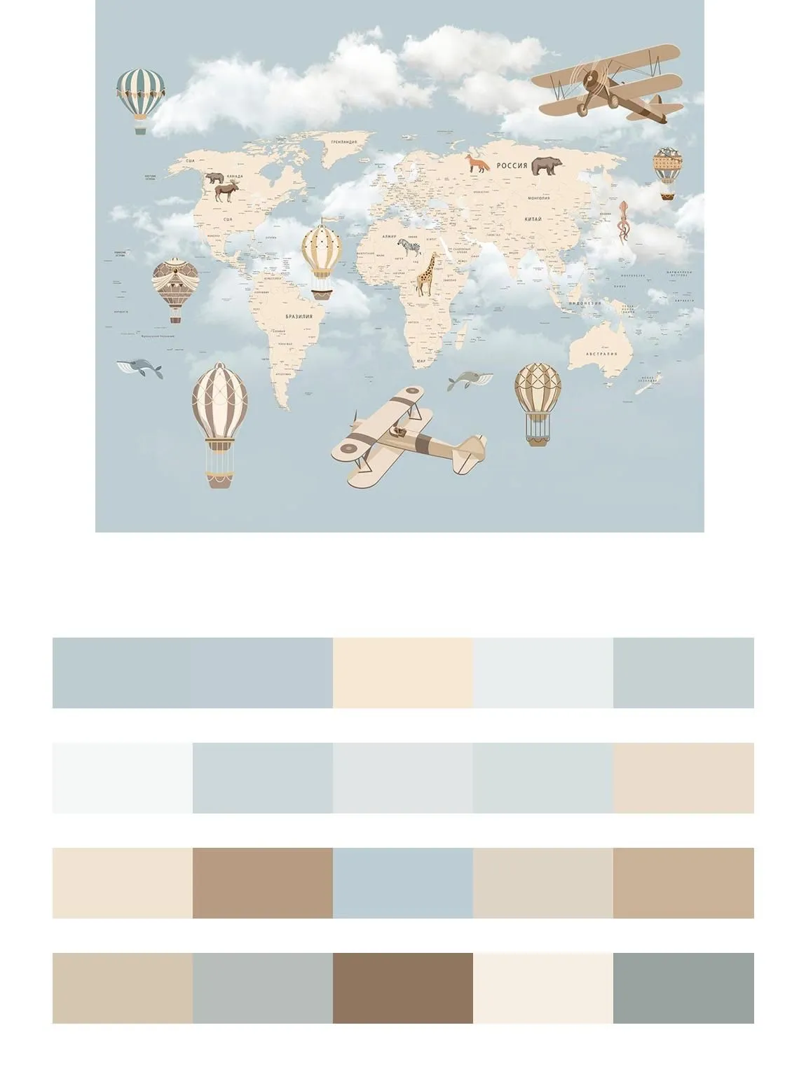 Бесшовные обои на стену: Карта мира с воздушными шарами. Артикул: 9-1629