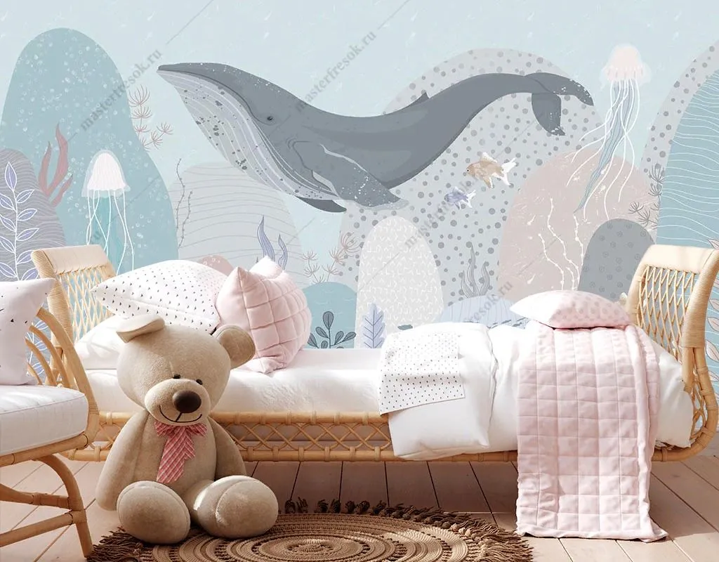 Бесшовные обои на стену: Кит на морском дне. Артикул: 12-1562