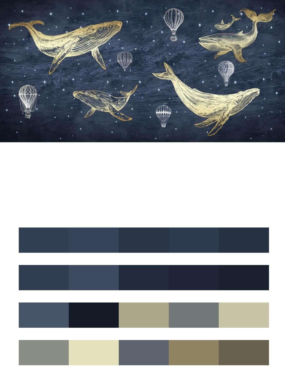 Бесшовные обои на стену: Киты на синем фоне. Артикул: 14-165