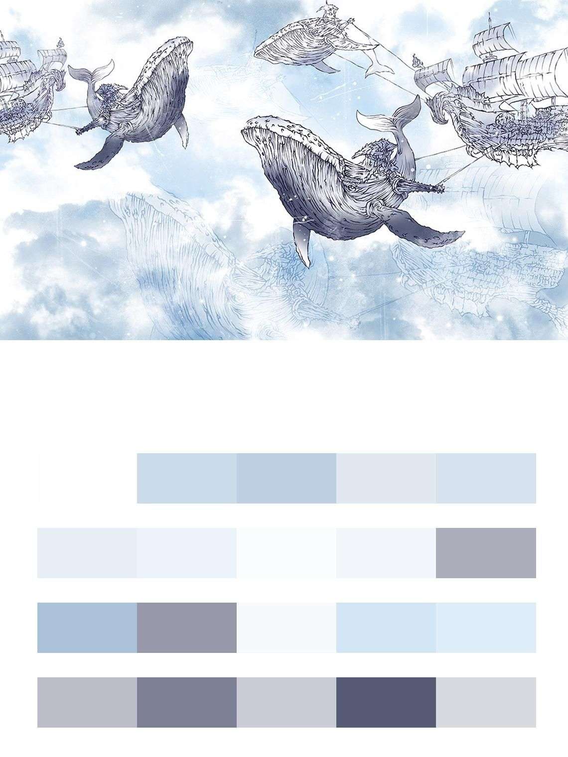 Бесшовные обои на стену: Большие киты в небе. Артикул: 9-1700