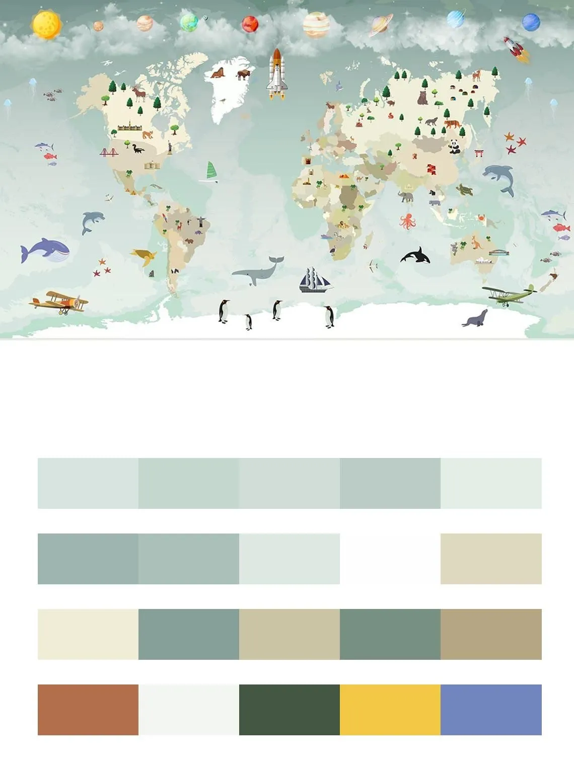 Бесшовные обои на стену: Космос детский с веселыми животными. Артикул: 12-1525