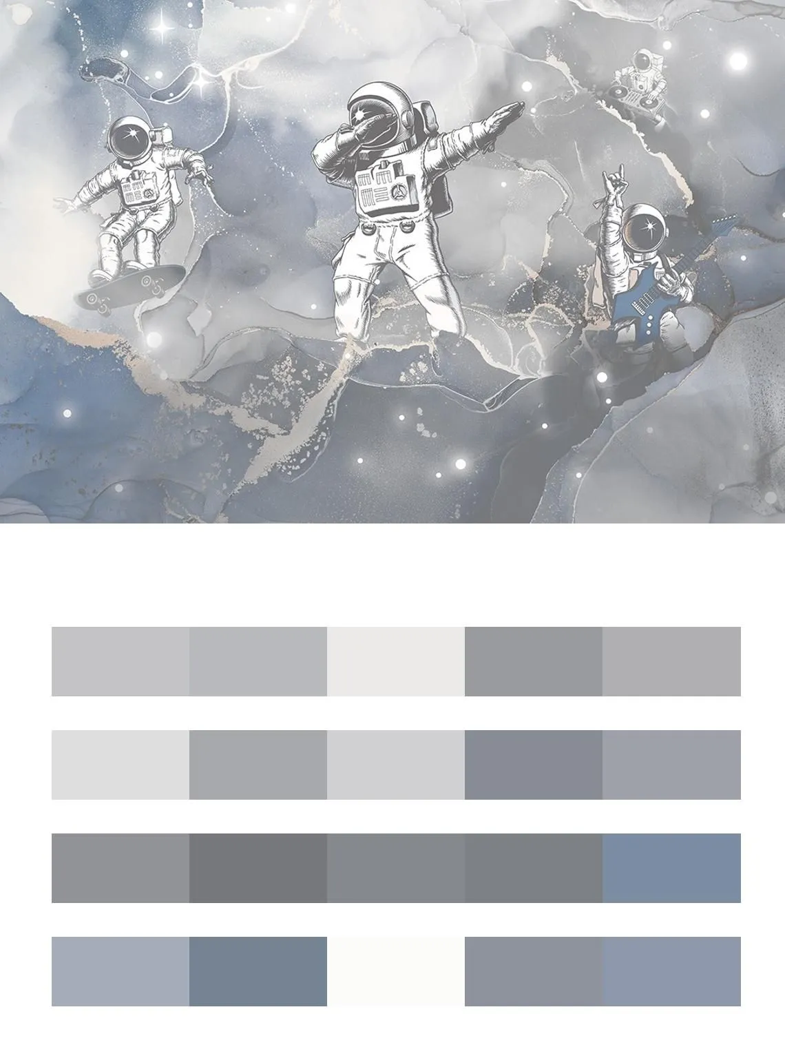 Бесшовные обои на стену: детские. Космонавты в космосе. Артикул: 12-1630