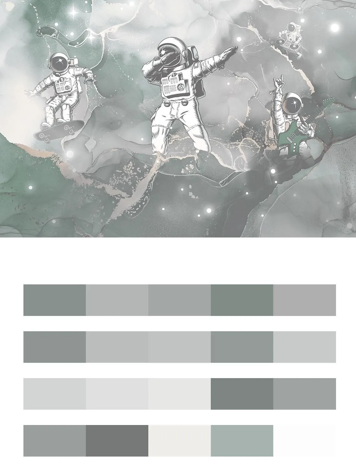 Бесшовные обои на стену: в детскую Космонавты. Артикул: 12-1631