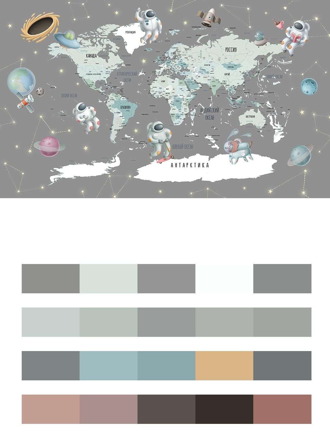 Бесшовные обои на стену: детские. Космическая карта мира. Артикул: 12-1635