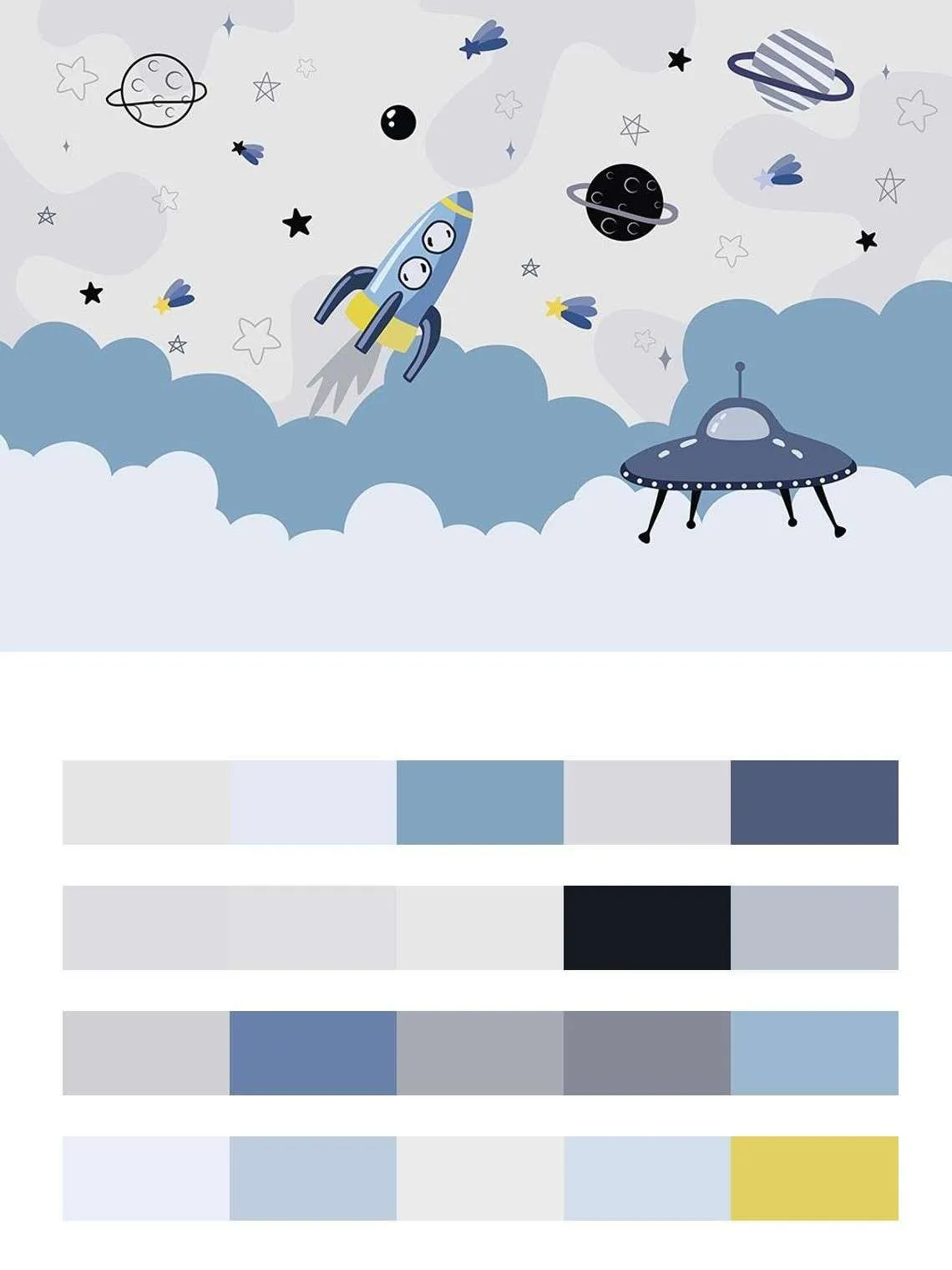 Бесшовные обои на стену: Космос для малышей. Артикул: 14-011