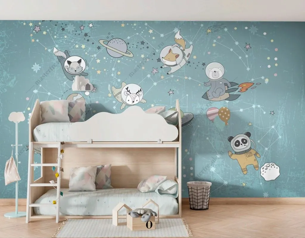 Бесшовные обои на стену: Космос детский с животными. Артикул: 14-669