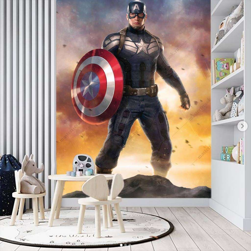 Бесшовные обои на стену: Капитан Америка. Артикул: 12-1027