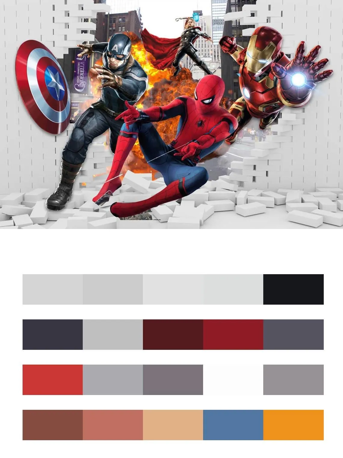 Бесшовные обои на стену: Супергерои из стены. Артикул: 12-1304