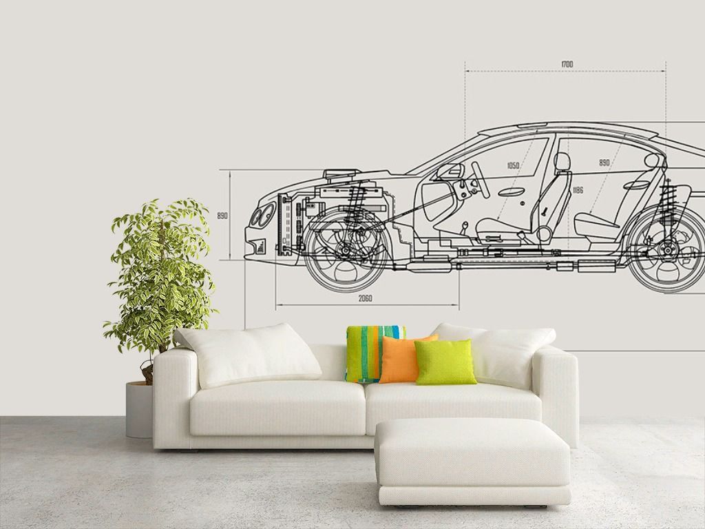 Бесшовные обои на стену: Машина схема. Артикул: 9-1957