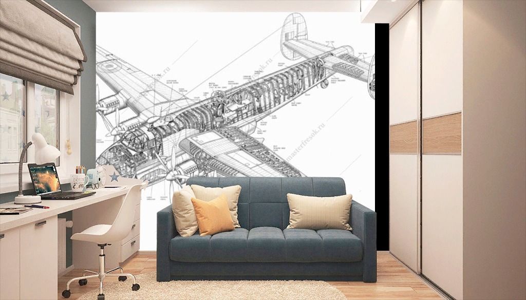 Бесшовные обои на стену: Схема самолета. Артикул: 12-1302