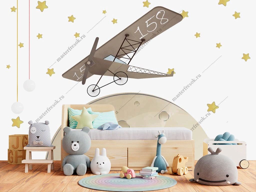 Бесшовные обои на стену: Самолет на луне. Артикул: 12-1370