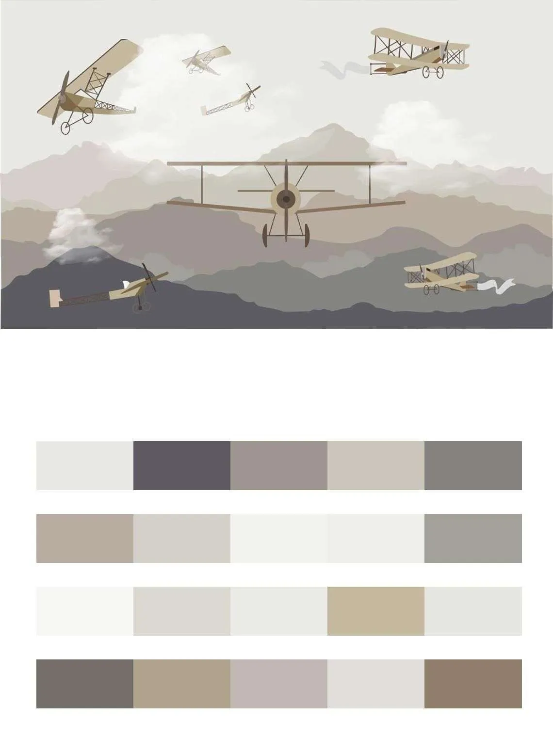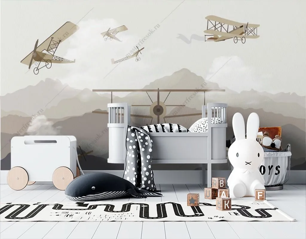 Бесшовные обои на стену: Ретро самолет в горах. Артикул: 12-1451