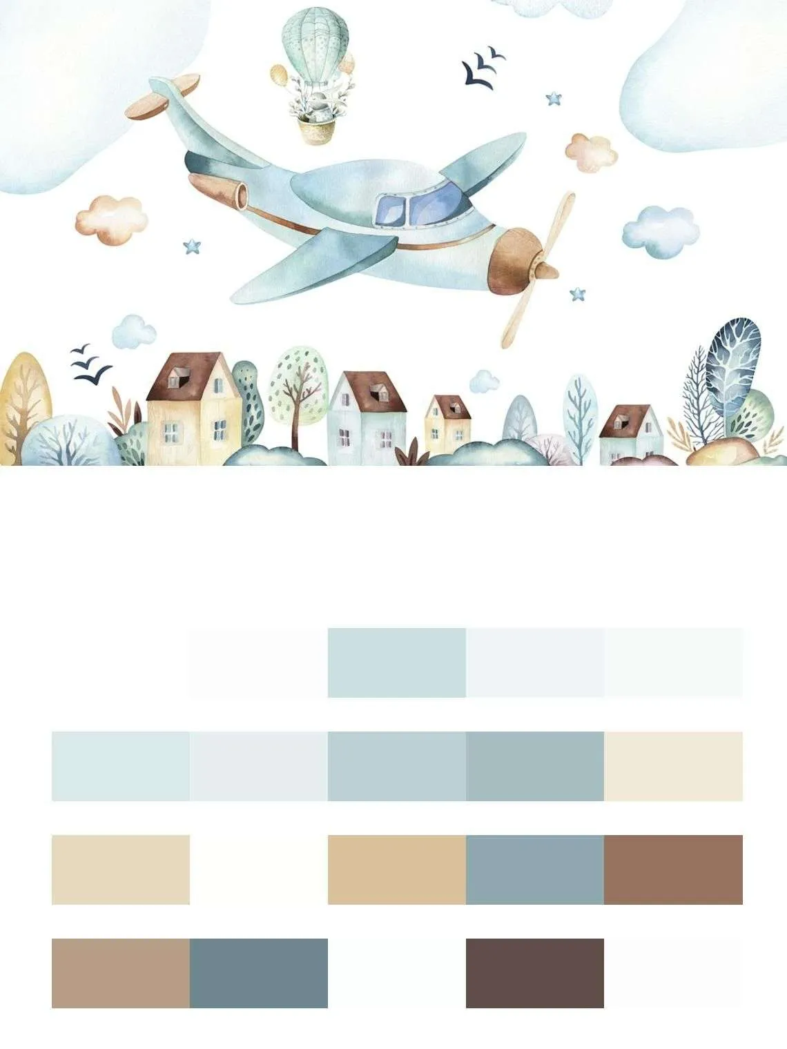 Бесшовные обои на стену: Самолетик над городом. Артикул: 14-506