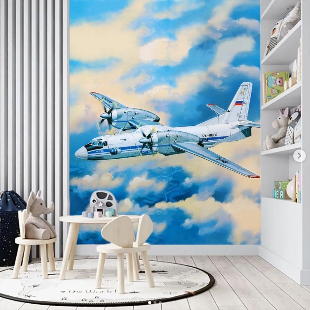 Бесшовные обои на стену: Самолет в облаках. Артикул: 9-1956