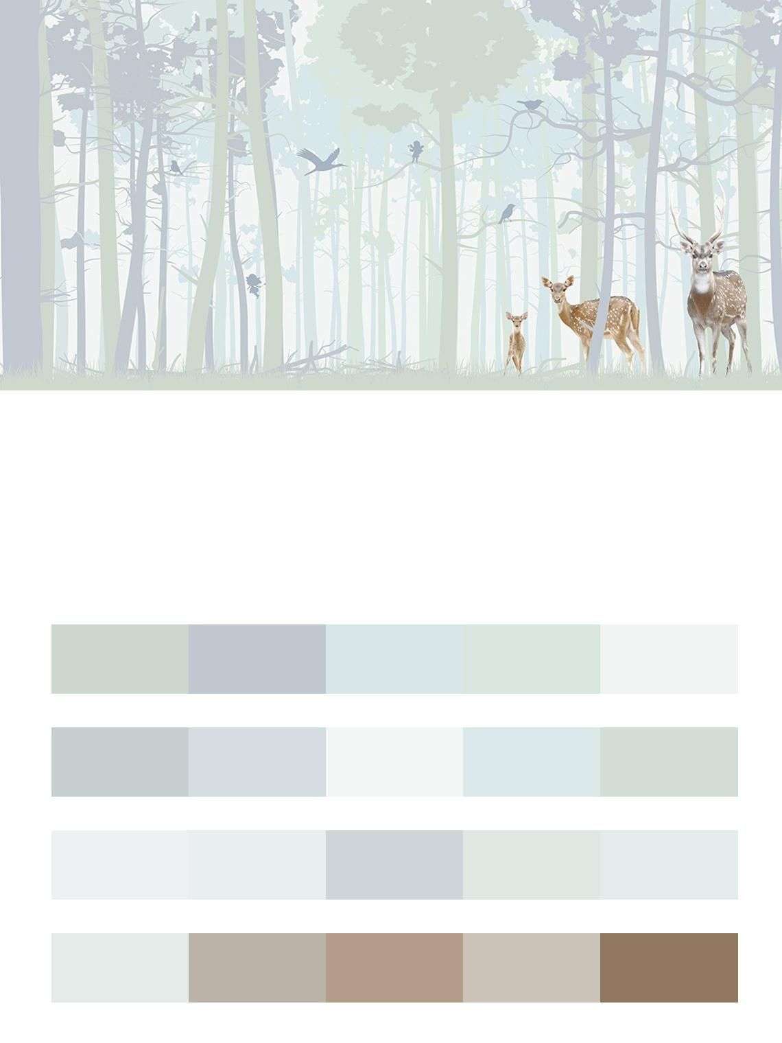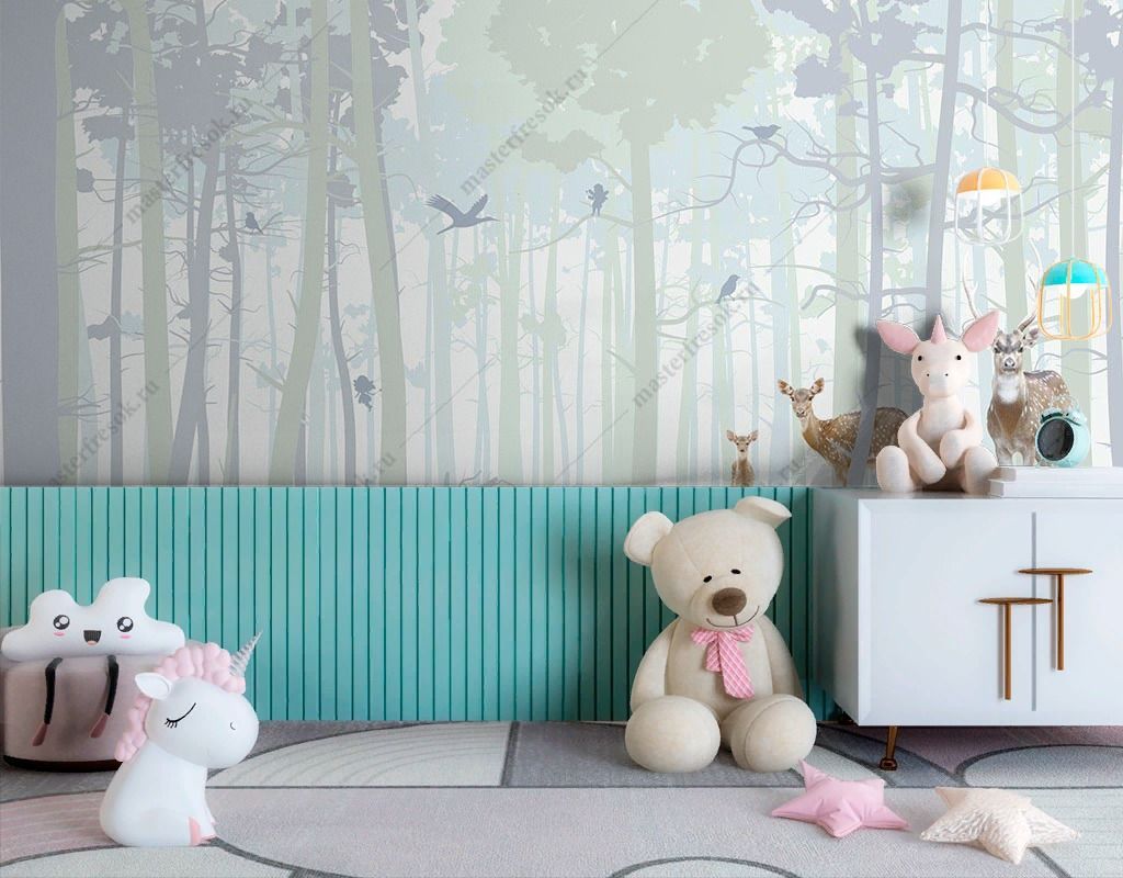 Бесшовные обои на стену: Лес волшебный с оленями. Артикул: 12-1466