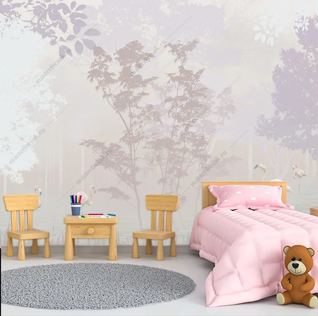 Бесшовные обои на стену: Фламинго в розовом лесу. Артикул: 12-1479