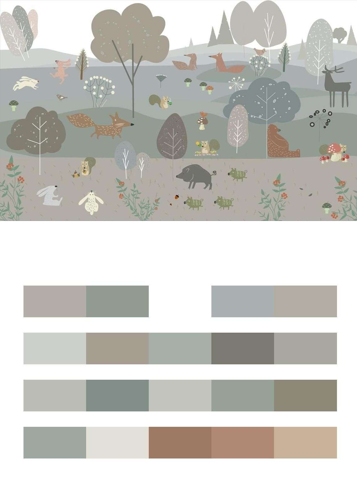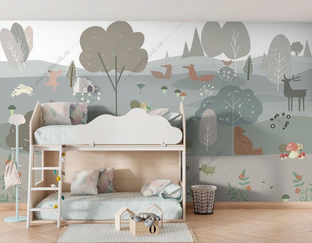 Бесшовные обои на стену: Полянка с животными рисунок. Артикул: 12-1512