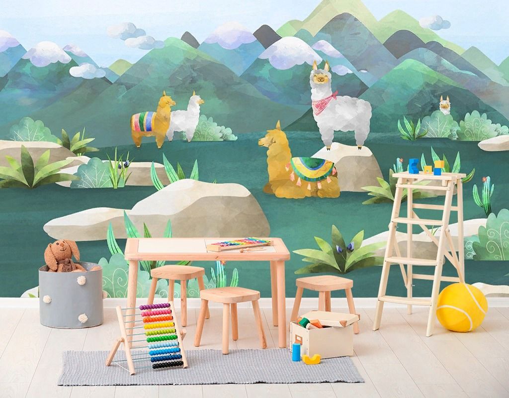 Бесшовные обои на стену: детские. Альпаки гуляют. Артикул: 12-1617