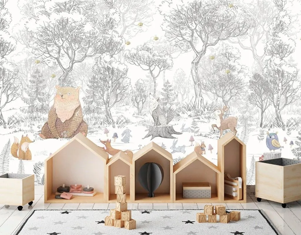 Бесшовные обои на стену: Лес с животными. Артикул: 12-1640