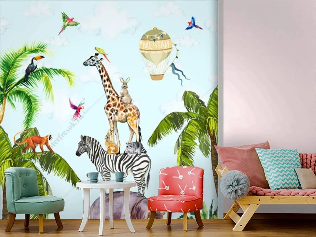 Бесшовные обои на стену: Пирамида из животных. Артикул: 12-927