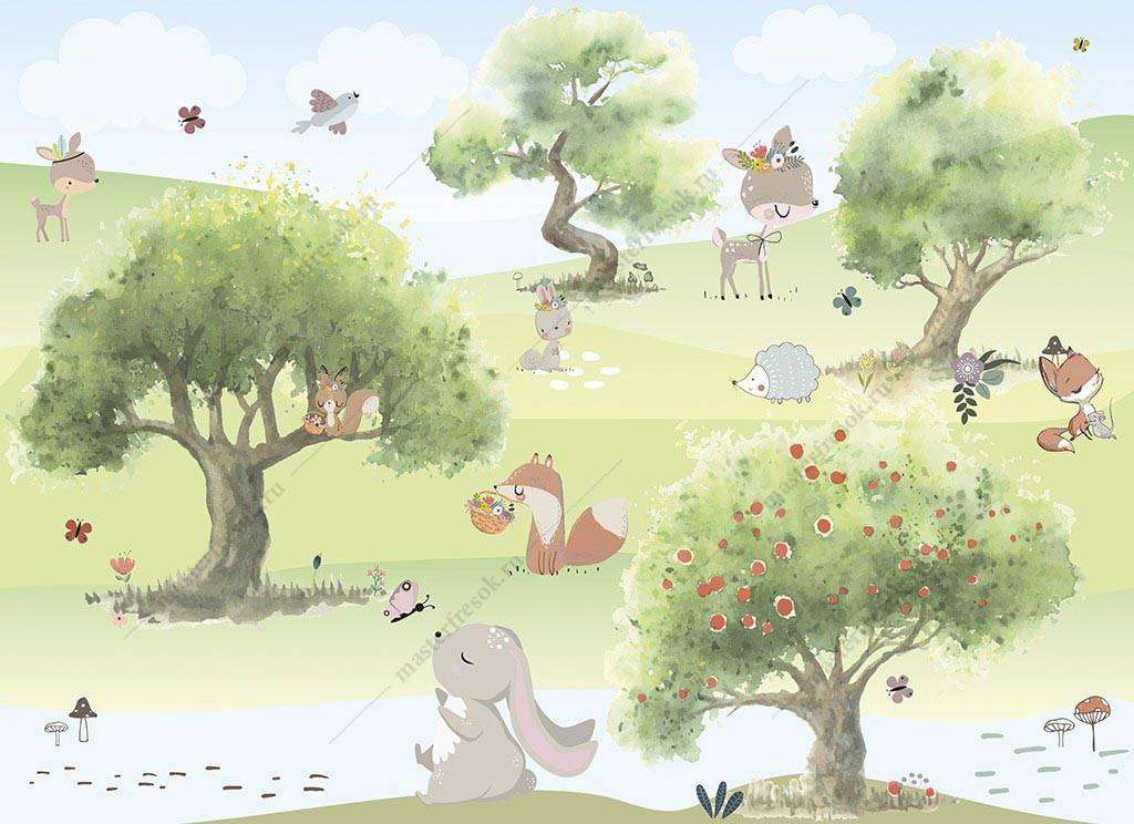 Бесшовные обои на стену: Животные в лесу. Артикул: 13-164