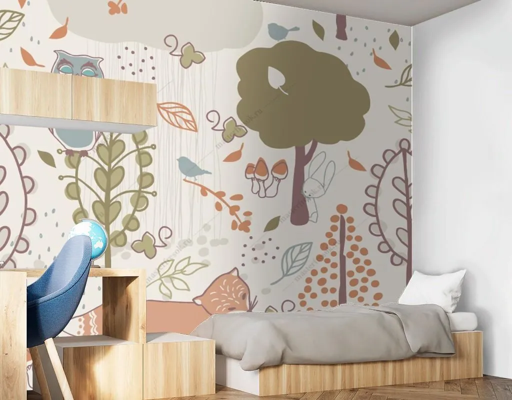Бесшовные обои на стену: Звери в осеннем лесу. Артикул: 14-408