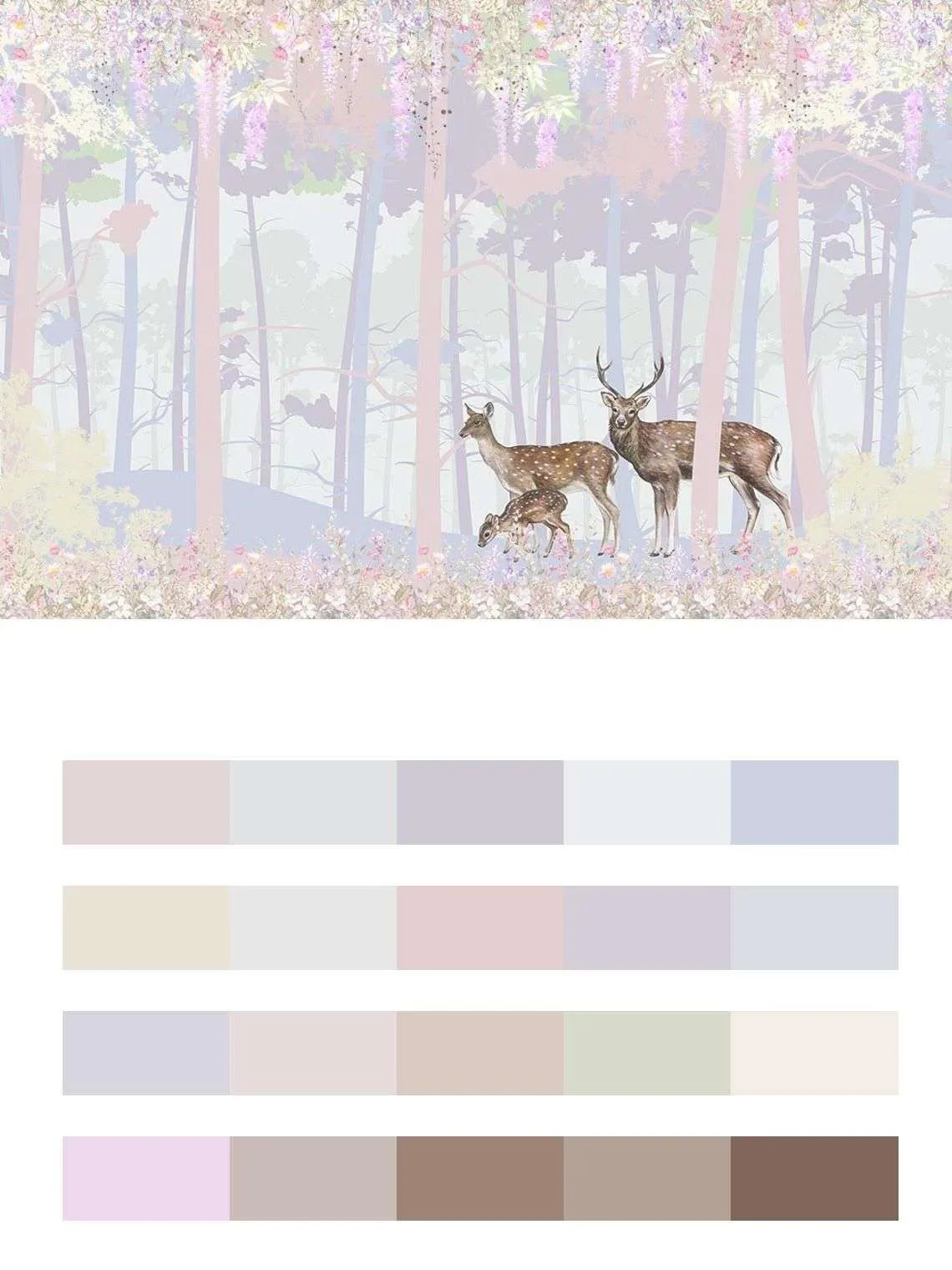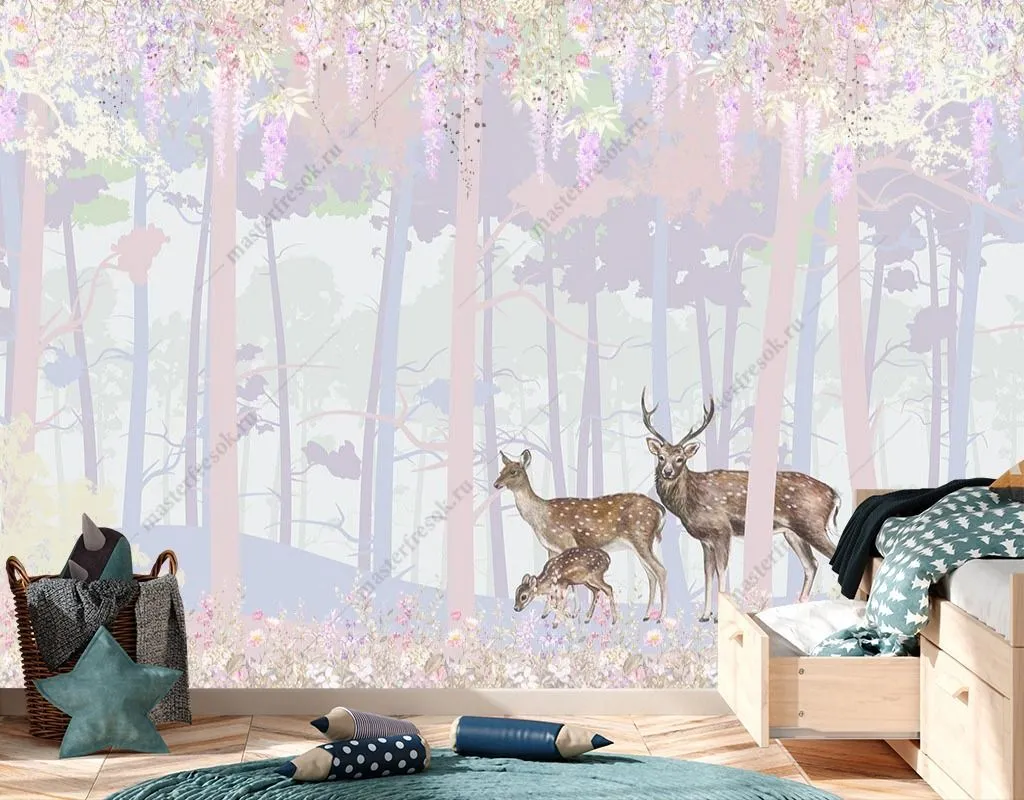 Бесшовные обои на стену: Олени в волшебном лесу. Артикул: 14-416