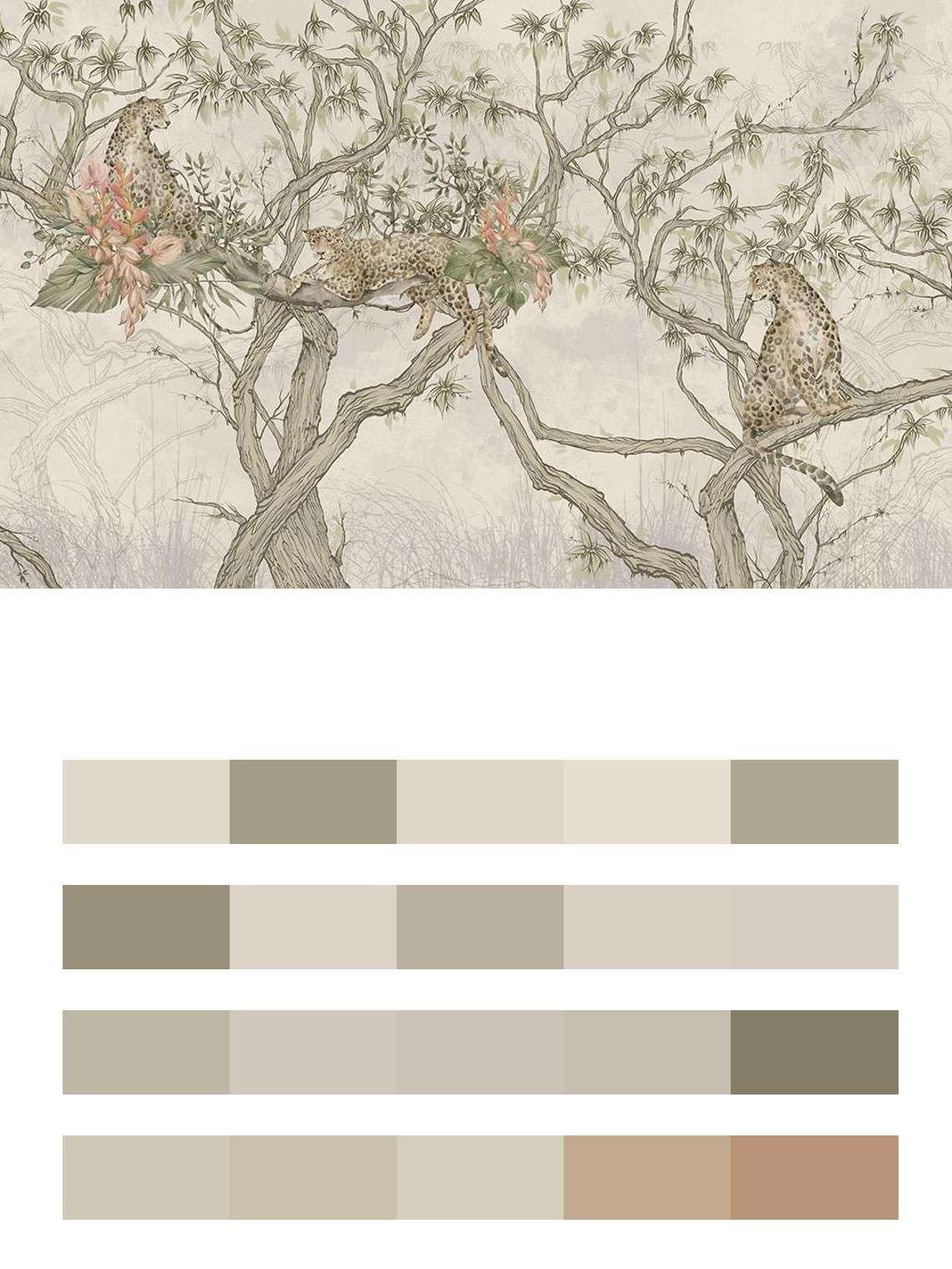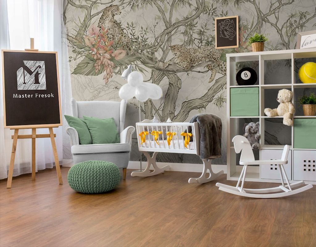 Бесшовные обои на стену: Китайская живопись гепард. Артикул: 14-449