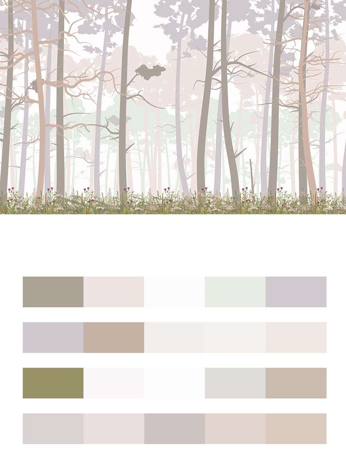 Бесшовные обои на стену: Сказочный лес в дымке. Артикул: 14-459