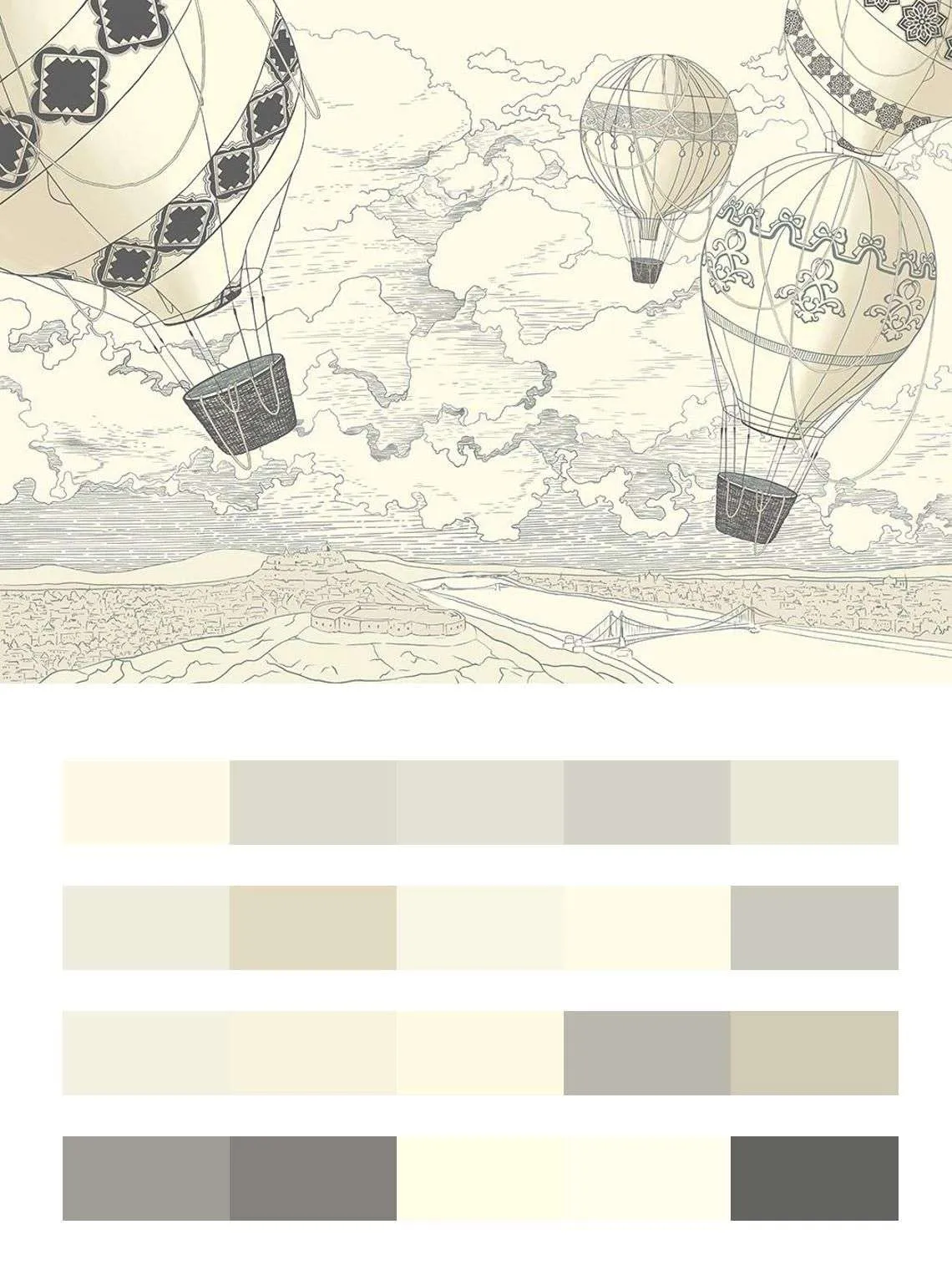 Бесшовные обои на стену: Воздушные шары на белом фоне. Артикул: 12-1438