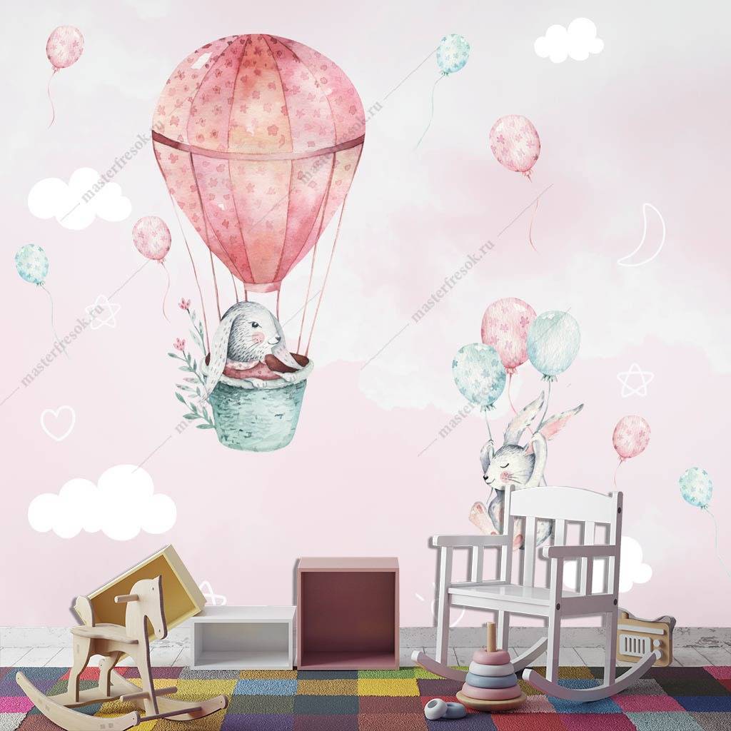 Бесшовные обои на стену: Зайки на шариках. Артикул: 12-822