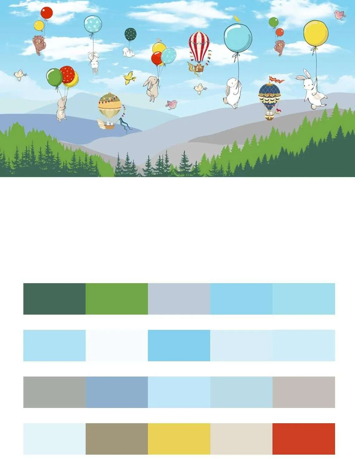 Бесшовные обои на стену: Шарики над лесом. Артикул: 12-949