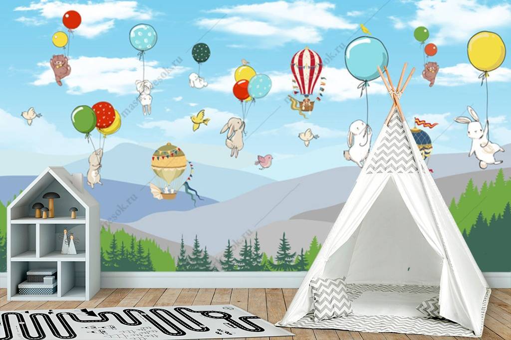 Бесшовные обои на стену: Шарики над лесом. Артикул: 12-949