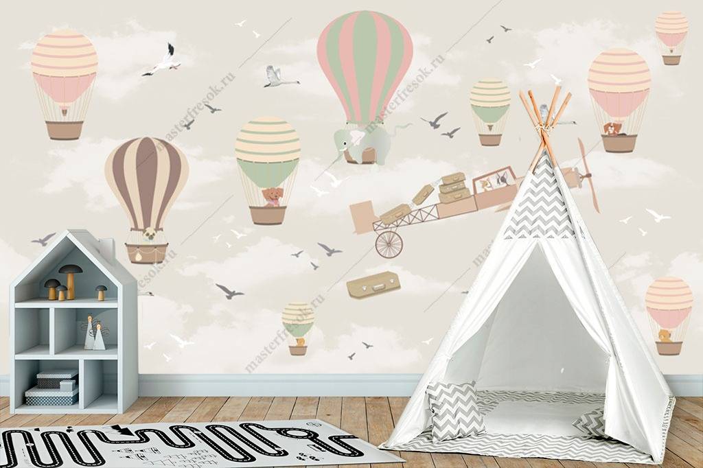 Бесшовные обои на стену: Самолет и воздушный шар. Артикул: 12-959