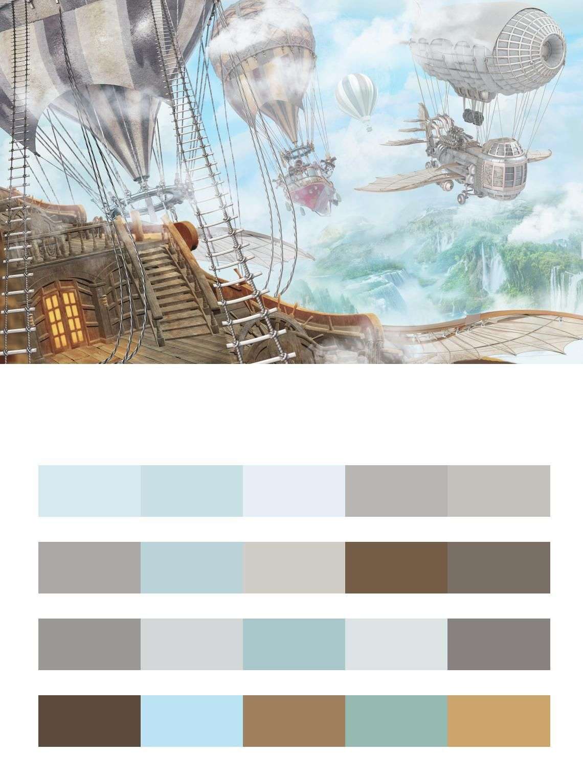 Бесшовные обои на стену: Корабли в небе. Артикул: 13-173