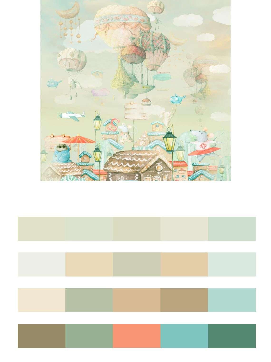 Бесшовные обои на стену: Воздушный шар над городом. Артикул: 13-187