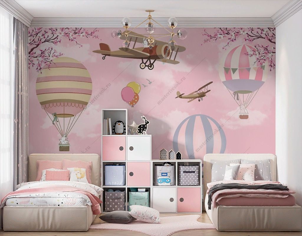 Бесшовные обои на стену: Воздушные шары на розовом фоне. Артикул: 14-538
