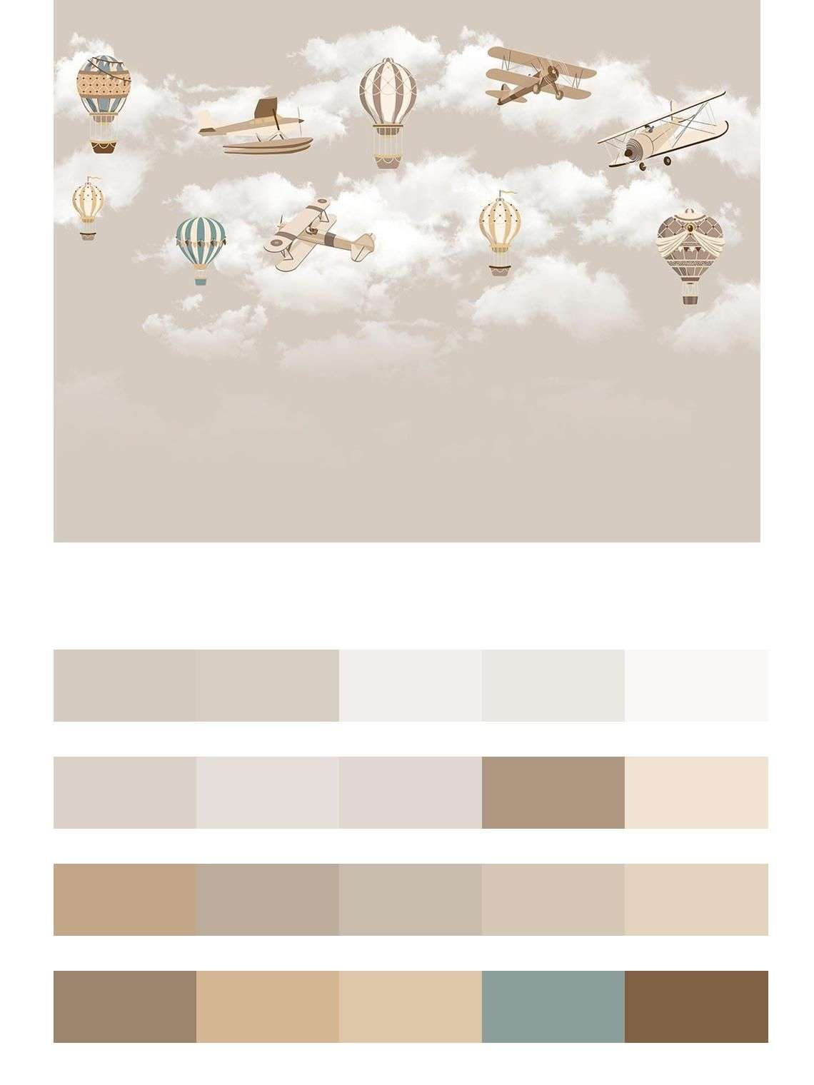 Бесшовные обои на стену: Воздушные шары в облаках. Артикул: 9-1624