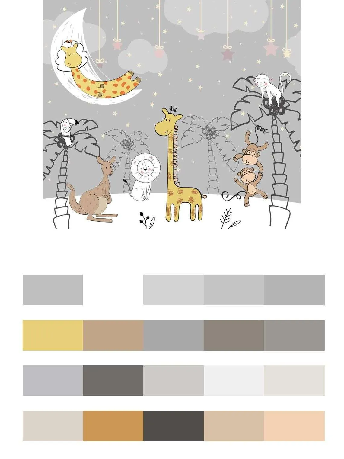 Бесшовные обои на стену: Милые зверята на полянке. Артикул: 12-1312