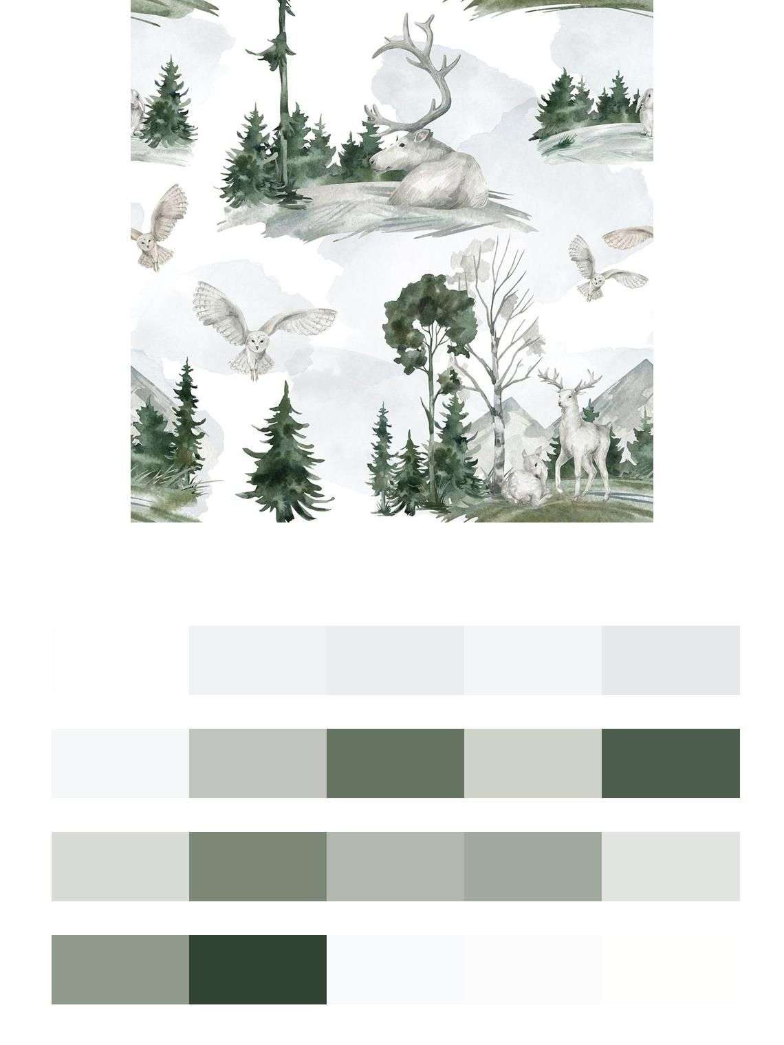 Бесшовные обои на стену: Лесной фон с елочками. Артикул: 12-1497