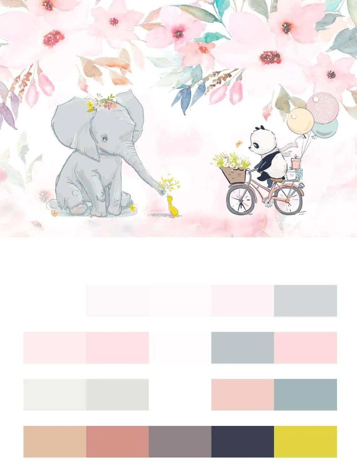 Бесшовные обои на стену: Слоненок и медвежонок. Артикул: 14-019