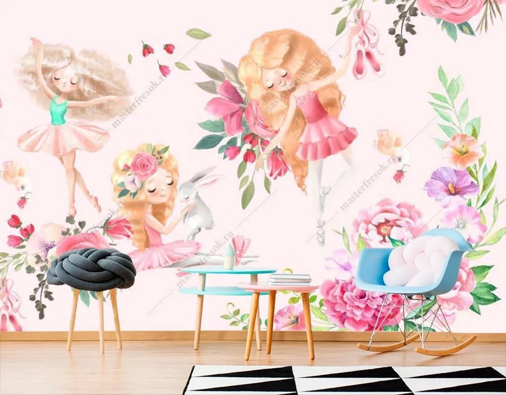 Бесшовные обои на стену: Девочки в цветах. Артикул: 14-022