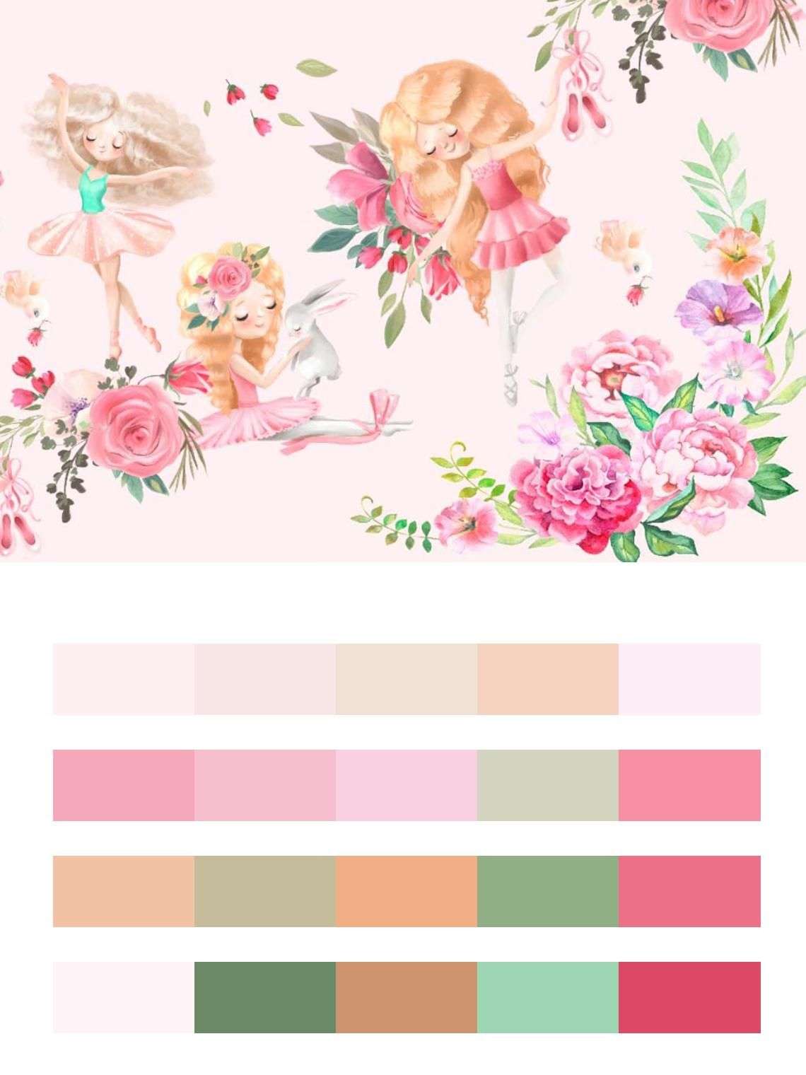 Бесшовные обои на стену: Девочки в цветах. Артикул: 14-022