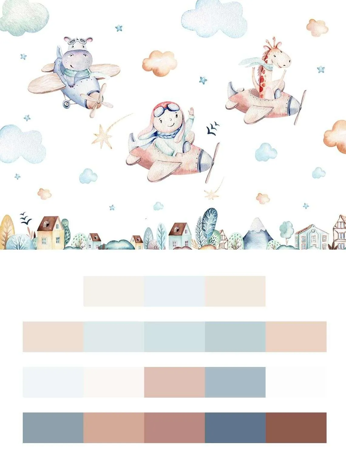 Бесшовные обои на стену: Зверята на самолете. Артикул: 14-092