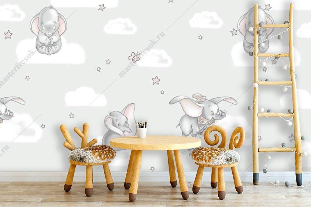 Бесшовные обои на стену: Слоненок в облаках. Артикул: 14-161