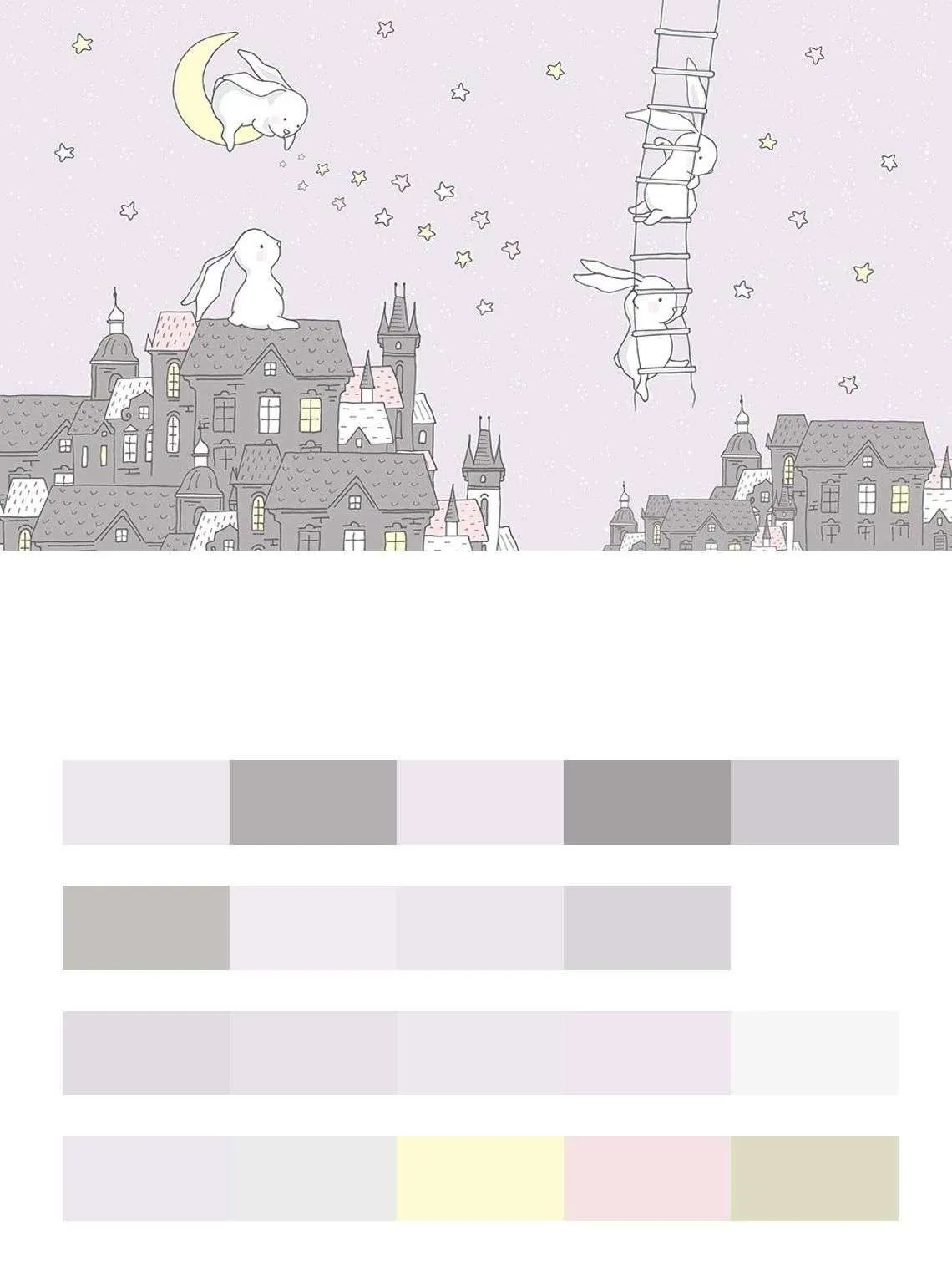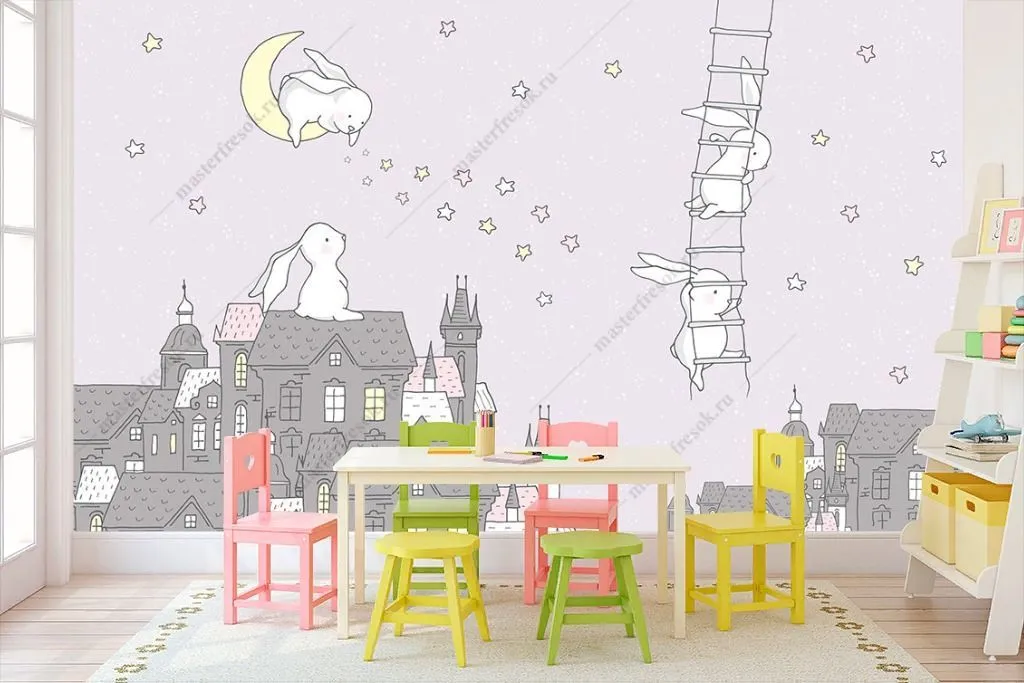 Бесшовные обои на стену: Зайки на крыше. Артикул: 14-231