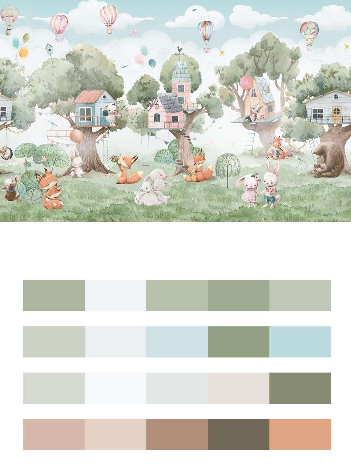 Бесшовные обои на стену: Деревья и животные с домиками. Артикул: 14-371
