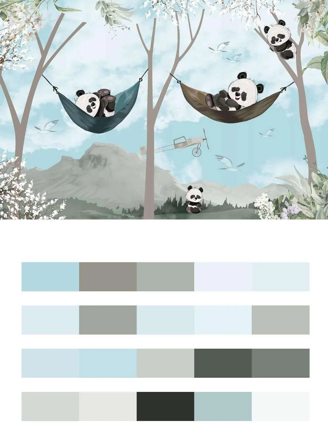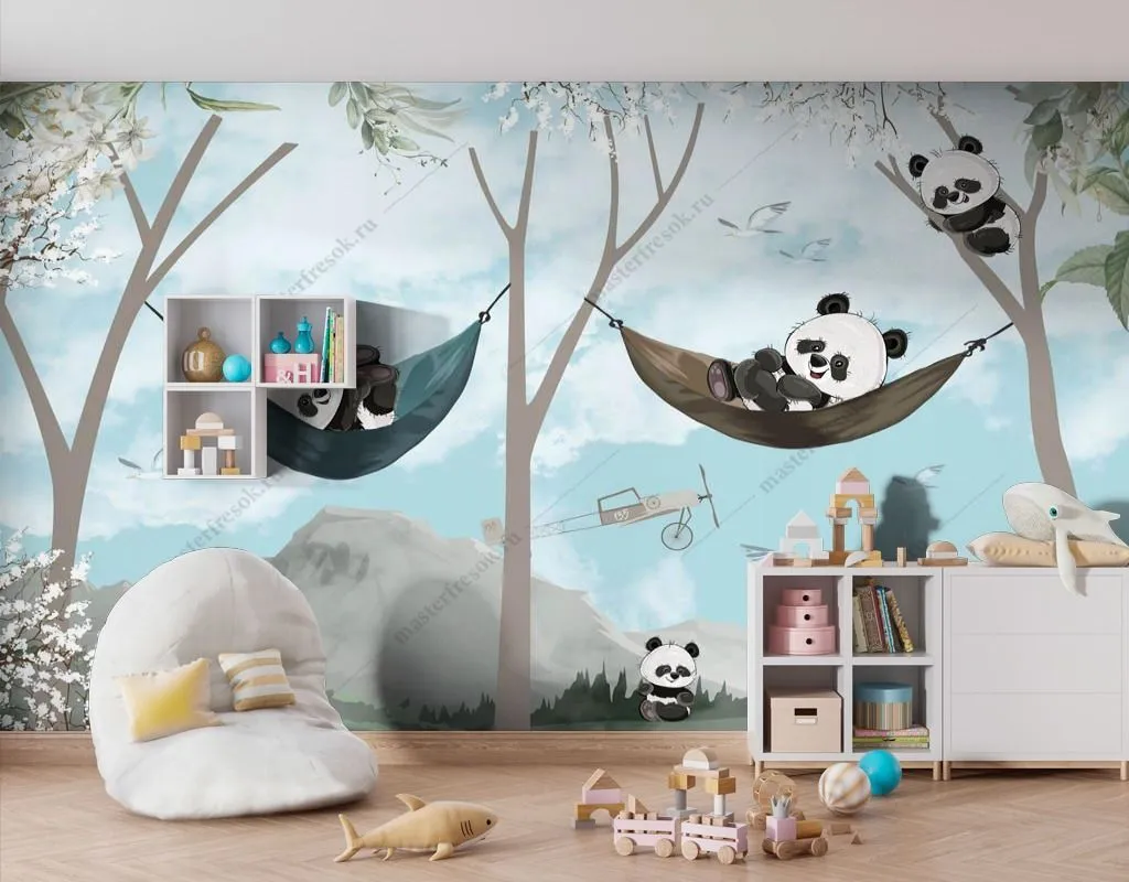 Бесшовные обои на стену: Панды в гамаках. Артикул: 14-536